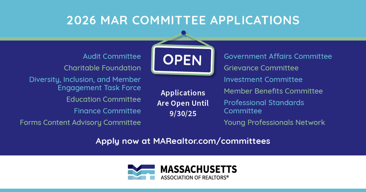 For questions or more information, contact the Membership Department at membership@realtorscentralma.org.