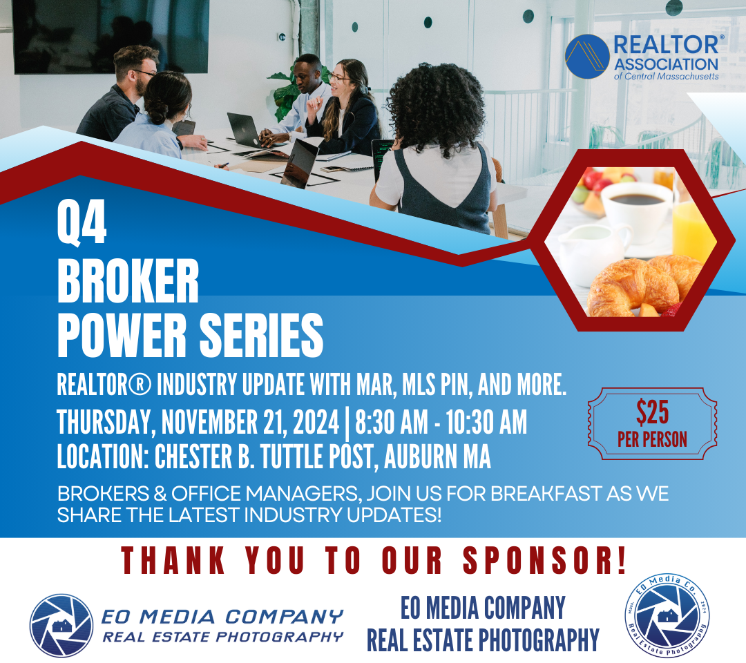 The orientation will include the mandatory Code of Ethics class. Our last orientation of the year will be: Wednesday, November 20, 8:30 AM - 12 PM. Register on our website, and reach out to the Membership Department at membership@realtorscentralma.org for questions.