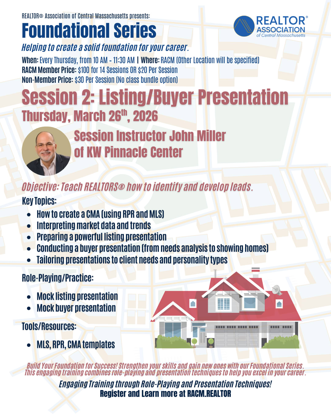 Weekly Series Foundational Series – Helping to create a solid foundation for your career. Thursday of each week from 10 am – 11:30 am Hands-on Training with Role Playing and Presentation techniques Topics