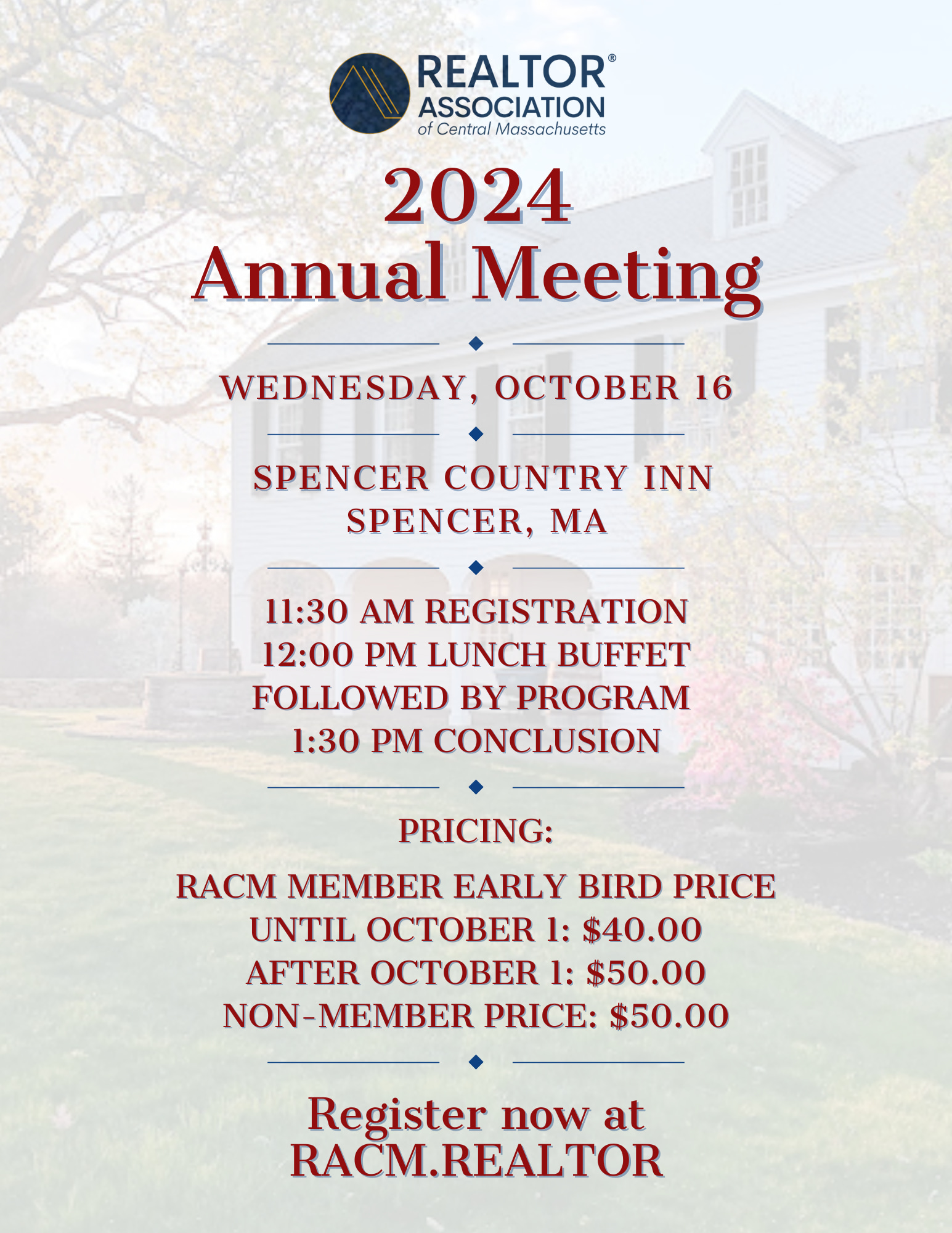 We invite you to attend RACM’s Annual Meeting, where we'll gather to reflect on our achievements over the past year and look ahead to future goals. The event will feature insightful presentations on key topics that impact our industry and community, including: