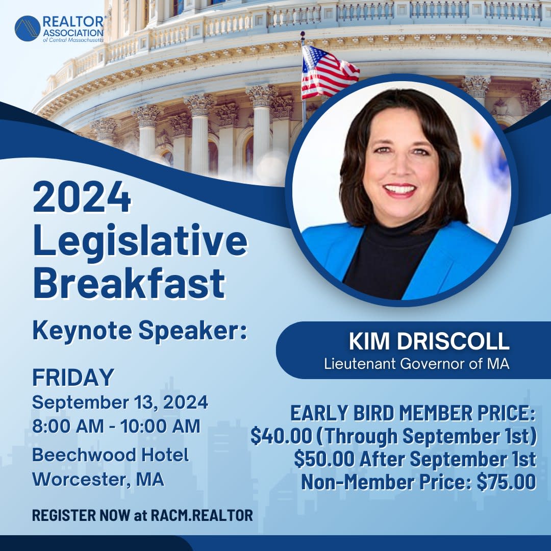RACM's Legislative Breakfast will be on September 13, 2024. Location: Beechwood Hotel Worcester, MA, Registration begins at 8 AM program begins at 8:30 AM Buffet Breakfast Included.