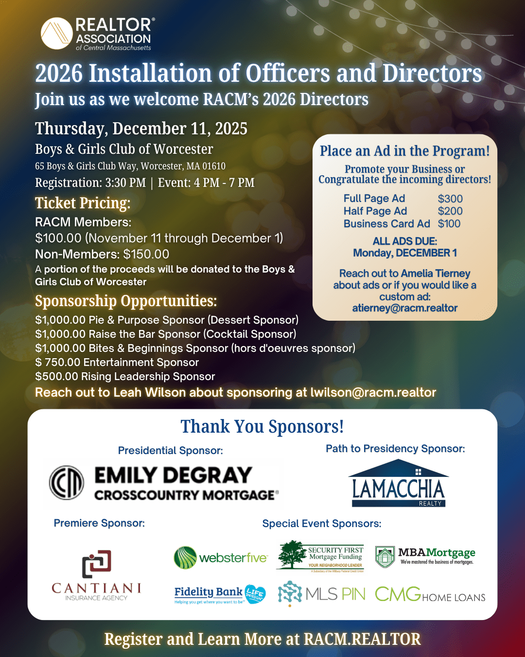 REALTOR® Association of Central MA Presents: The 2026 Installation of Officers & Directors
