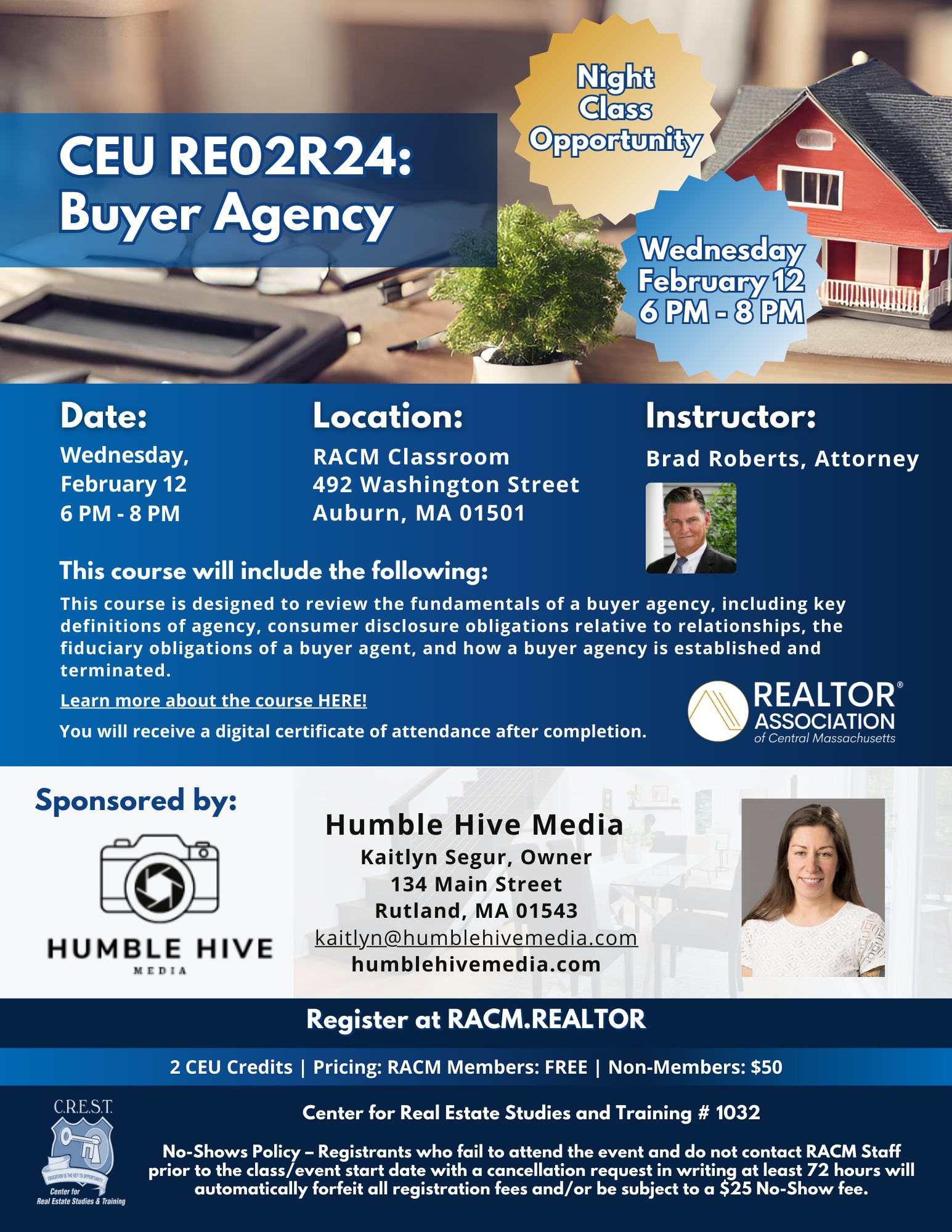 This course is designed to review the fundamentals of a buyer agency, including key definitions of agency, consumer disclosure obligations relative to relationships, the fiduciary obligations of a buyer agent, and how a buyer agency is established and terminated.