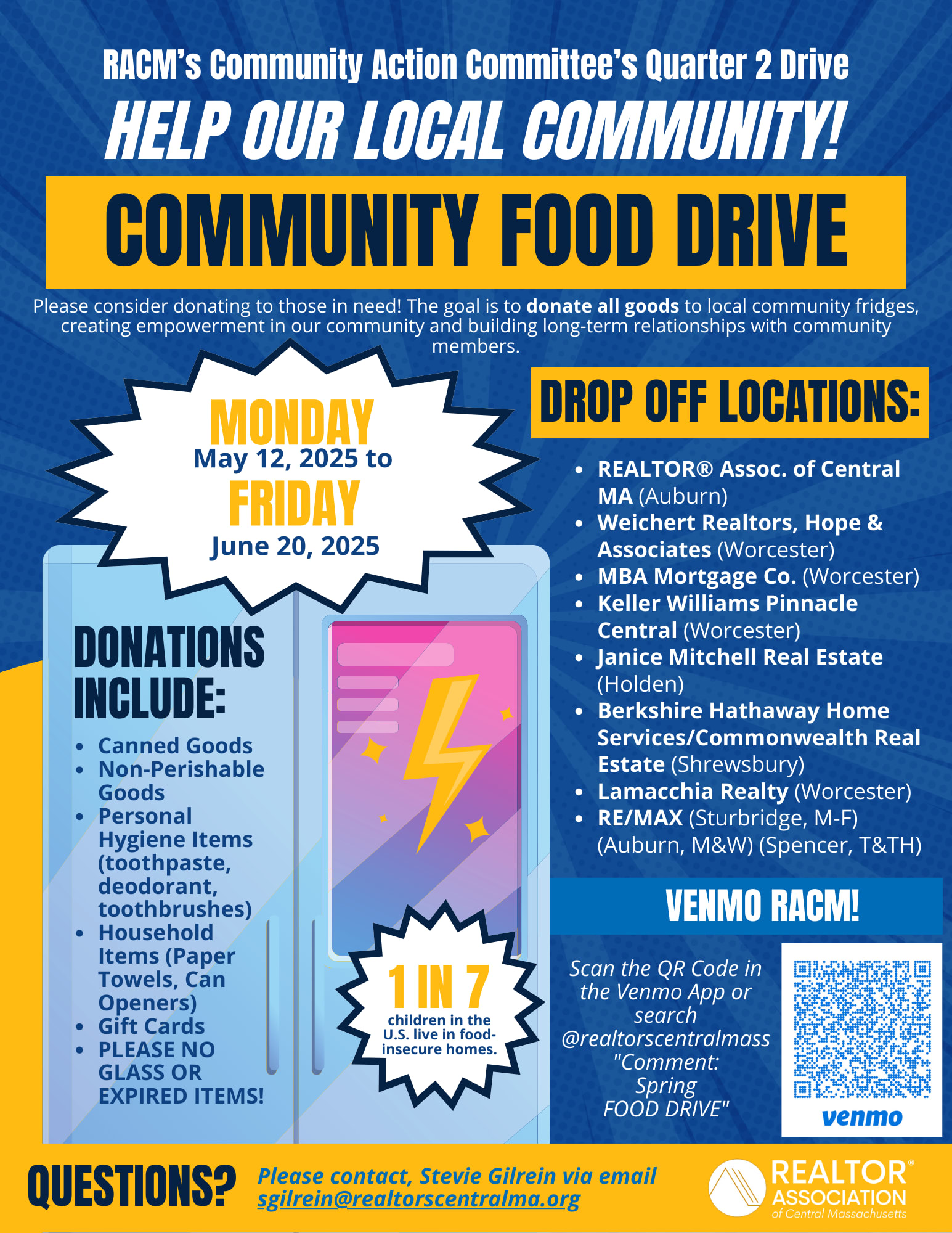 Venmo Donations will be accepted: Venmo @realtorscentralmass