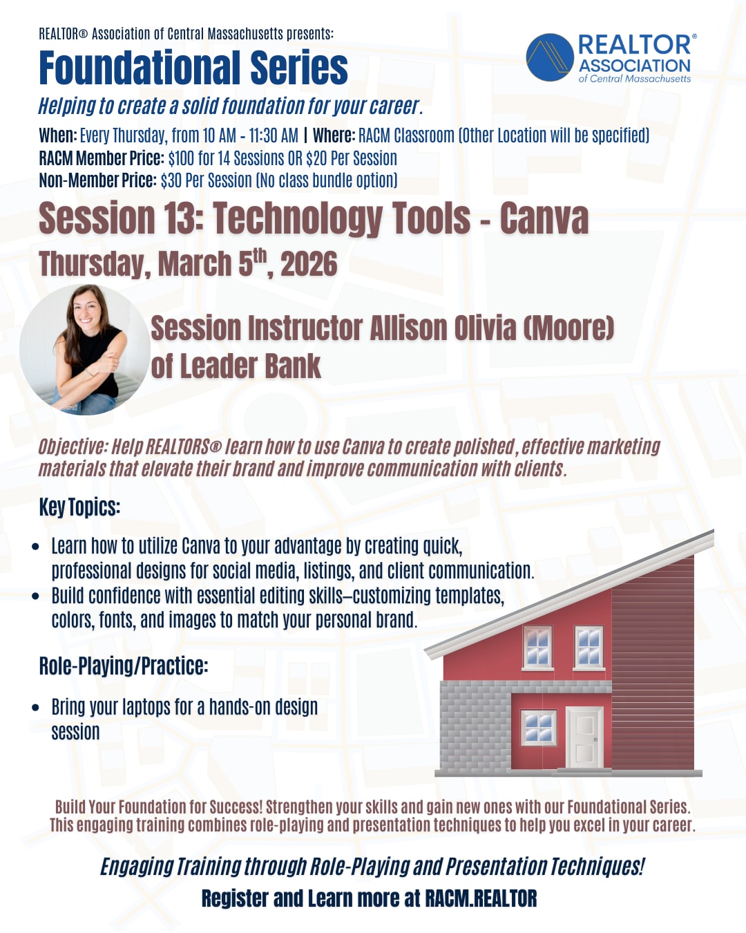 Objective: Help REALTORS® learn how to use Canva to create polished, effective marketing materials that elevate their brand and improve communication with clients.