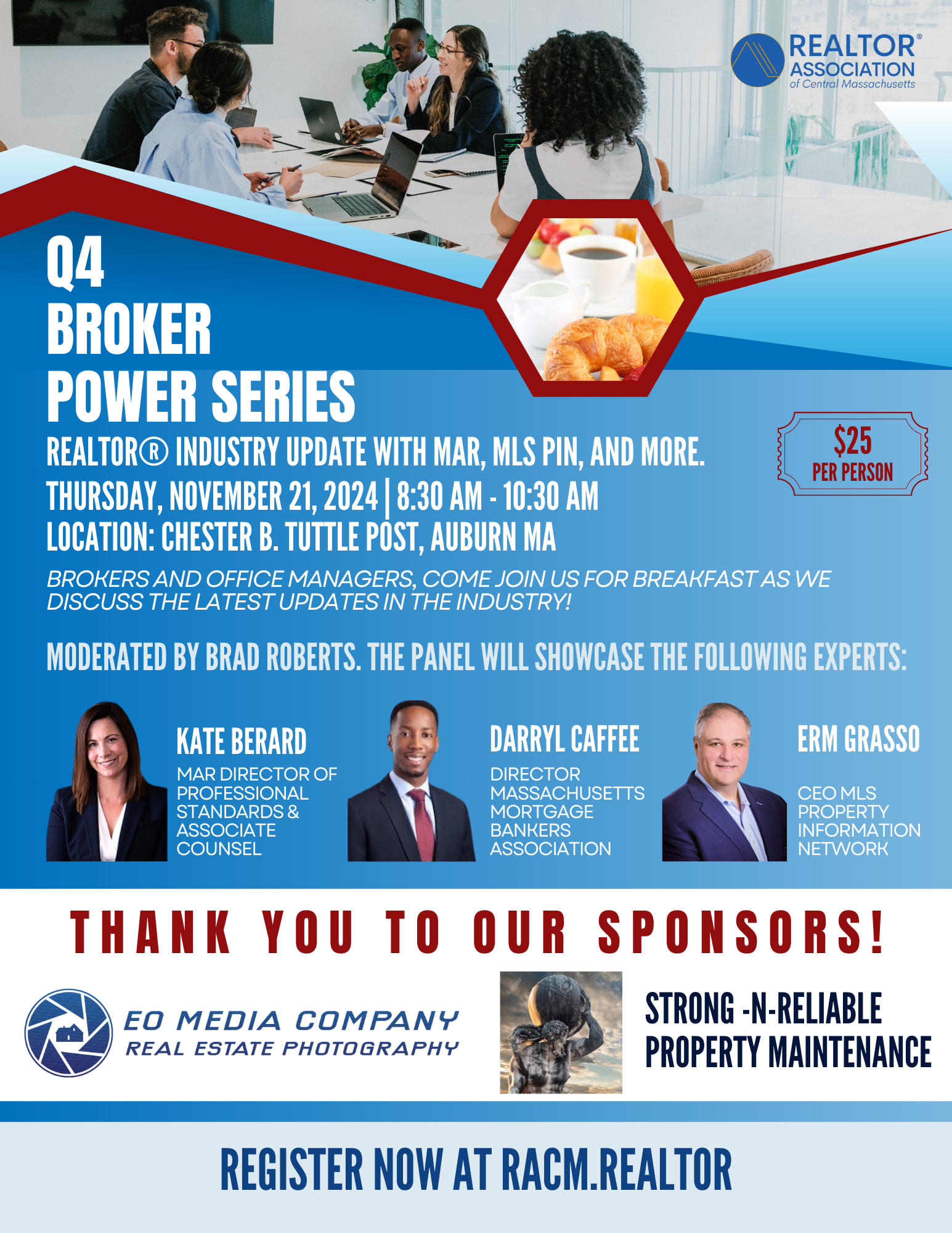 RACM's 2024 Broker Owner Task Force invites all Broker and Office Manager members to join us for our Q4 Broker Power Series: An Industry Update Breakfast Event.