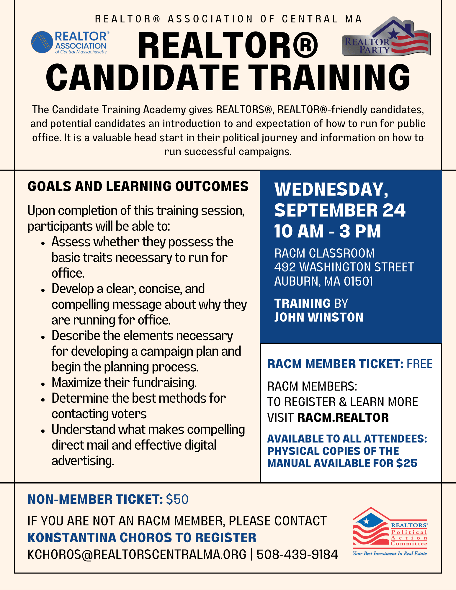 If you are not an RACM Member, please contact Konstantina Choros to register Kchoros@Realtorscentralma.org | 508-439-9184
