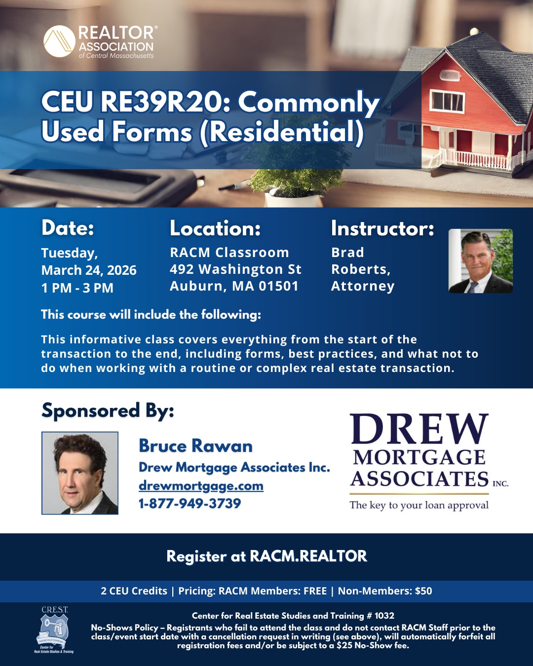 This informative class covers everything from the start of the transaction to the end, including forms, best practices, and what not to do when working with a routine or complex real estate transaction.